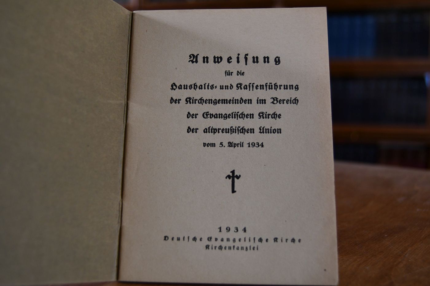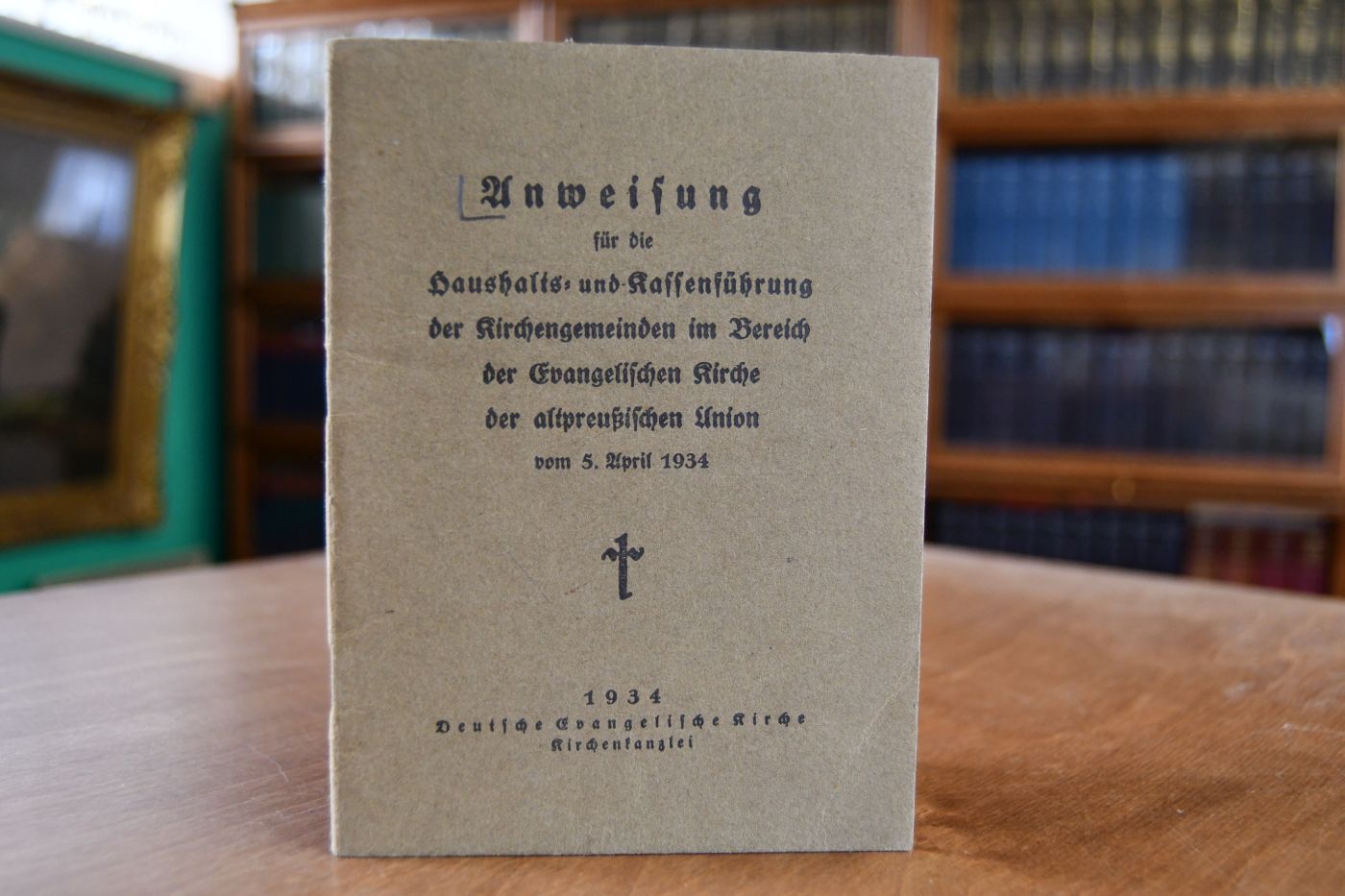 Anweisung für die Haushalts- und Kassenführung der Kirchengemeinden im Bereich der Evangelischen Kirche der altpreußischen Union vom 5. April 1934.