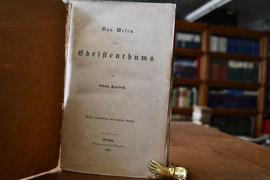 Beschreibung Broschurvorderdeckel losgelöst. Unbeschnittene Seiten an den Rändern angeschmutzt und mit Einrissen. Evtl. fehlt das Vorwort zur 1. Auflage, da nach dem Titel gleich das Vorwort zuir 2. Auflage kommt. Durchgehend fleckig. Als Gegenstück zu Kants "Kritik der reinen Vernunft" hatte Feuerbach (1804-1872) sein berühmtes Hauptwerk als "Kritik der reinen Unvernunft" komponiert. Aber sein Verleger Otto Wigand setzte sich mit dem Titel "Wesen des Christenthums" durch. Feuerbach löste mit seinem Werk den Konflikt, in den die Hegelsche Schule geraten war, indem er das System durchbrach und es einfach beiseite warf. "Man muß die befreiende Wirkung dieses Bruches selbst erlebt haben, um sich eine Vorstellung davon zu machen. Die Begeisterung war allgemein: Wir waren alle momentan Feuerbachianer" (Friedrich Engels). Feuerbachs Lehren fanden sowohl vehemente Ablehnung als auch begeisterte Zustimmung und hatten tiefgreifende Wirkung auf die Radikalisierung bürgerlich-kritischen Denkens am Vorabend der Revolution. Marx und Engels Übergang vom Idealismus zum Materialiusmus vollzog sich wesentlich unter dem Einfluss Feuerbachs.