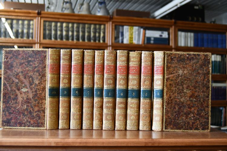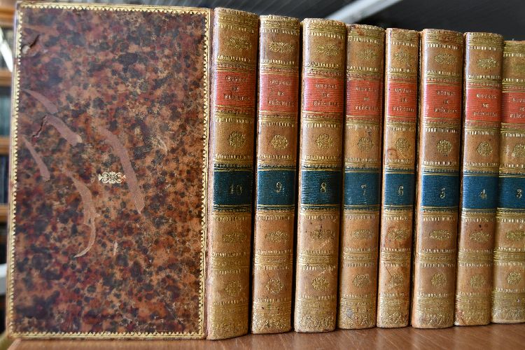 Beschreibung Einband berieben und bestoßen. Bde. 1+2 mit Wurmlöchern, Bd. 8 + 10 mit Fehlstelle am Rückdeckel. Innen durchgehend etwas fleckig. Sehr schöne, dekorative Reihe. Brunet II,288. Valentin Esprit Fléchier (1632-1710) namhafter französischer Bischof, Kanzelredner und Schriftsteller. Seine Leichenreden gelten als Meisterwerke. Verfasste daneben auch vor allem kulturgeschichtlich wertvolle und geistreiche Memoiren.