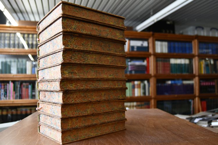 Format 22 x 14 cm, Leder mit Rückenvergoldung, 2 Rückenschilden und Stegrandvergoldung