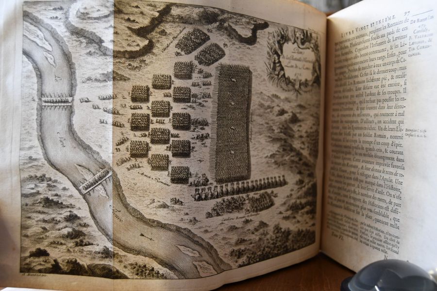 Seiten XXVIII, 586 S., 19 Bll. mit einigen mehrfach gefalteten Schlachten-Kupfern und mehrfach gefalteten Karten von Sizilien und Numidien