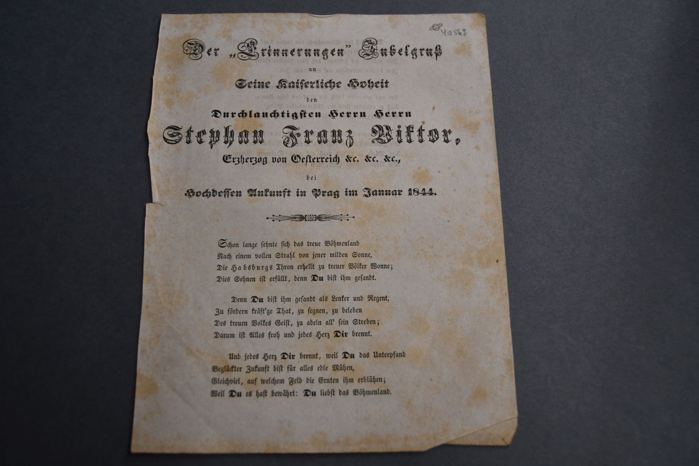 Der "Erinnerungen" Jubelgruß an Seine Kaiserliche Hoheit den Durchlauchtigsten Herrn Herrn Stephan Franz Viktor, Erzherzog von Oesterreich etc. etc. etc., bei Hochdessen Ankunft in Prag im Januar 1844.
