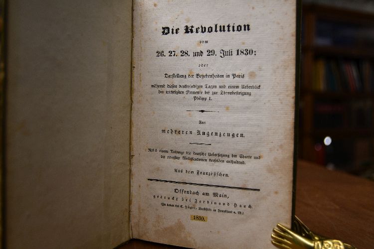 Die Revolution vom 26., 27., 28. und 29. Juli 1830; oder Darstellung der Begebenheiten in Paris während diesen denkwürdigen Tagen und einem Ueberblick der wichtigsten Momente bis zur Thronbesteigung Philipp I. Von mehreren Augenzeugen. Nebst einem Anhange die deutsche Uebersetzung der Charte und die neuesten Modificationen derselben enthaltend.