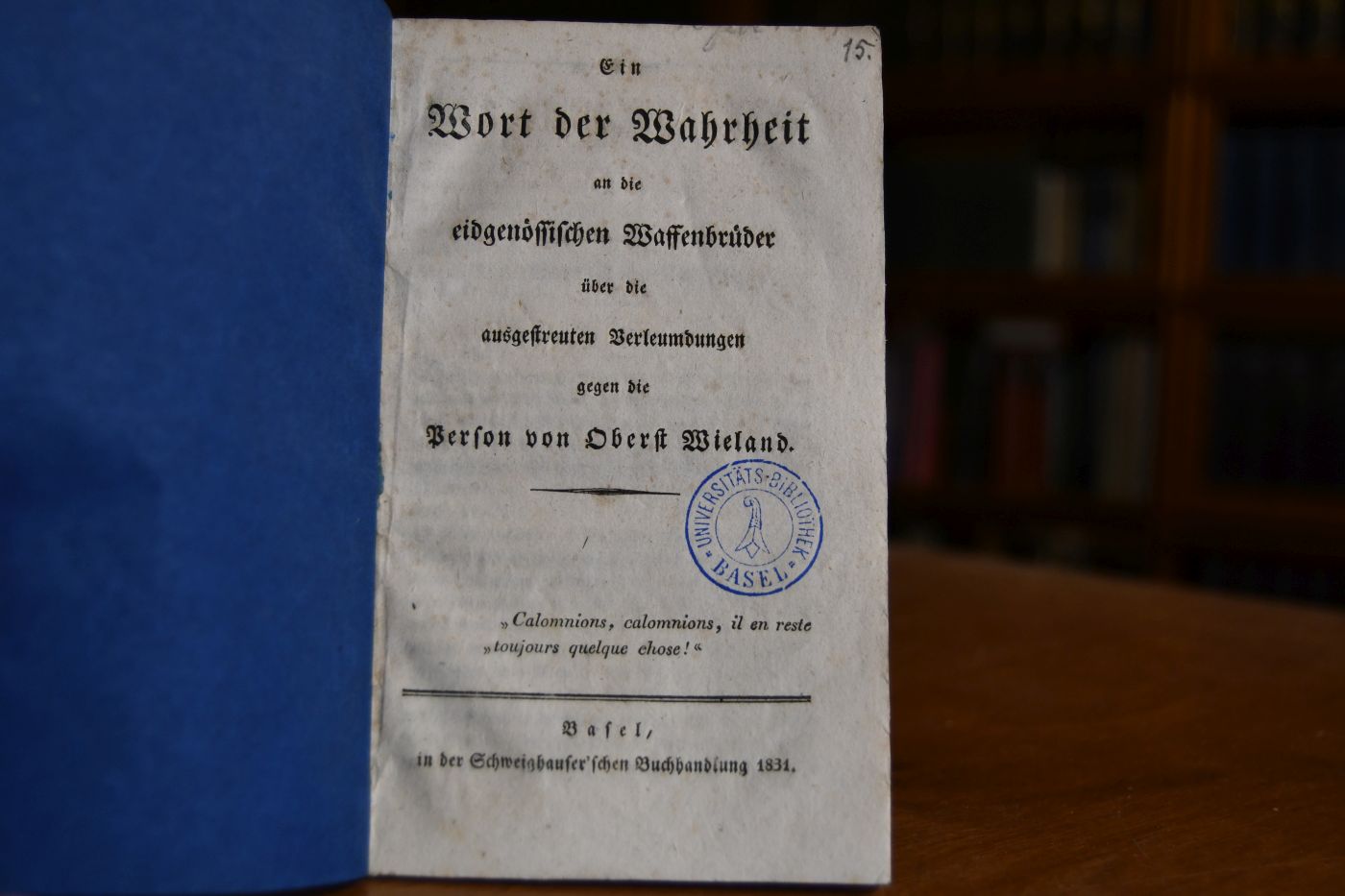 Ein Wort der Wahrheit an die eidgenössischen Waffenbrüder über die ausgestreuten Verleumdungen gegen die Person von Oberst Wieland.
