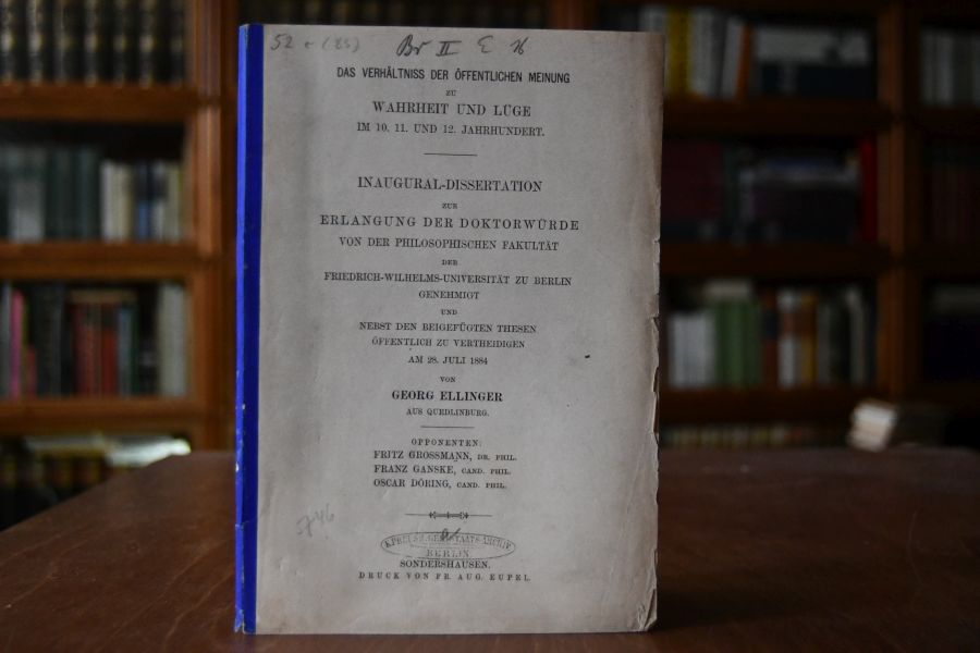 Beschreibung Einband berieben, bestoßen und angeschmutzt. Etwas eselsohrig. Bibliotheksexemplar (K.Preuss.Geh.Staats-Archiv Berlin) mit den üblichen Stempeln und Eintragungen. Innen sauber.