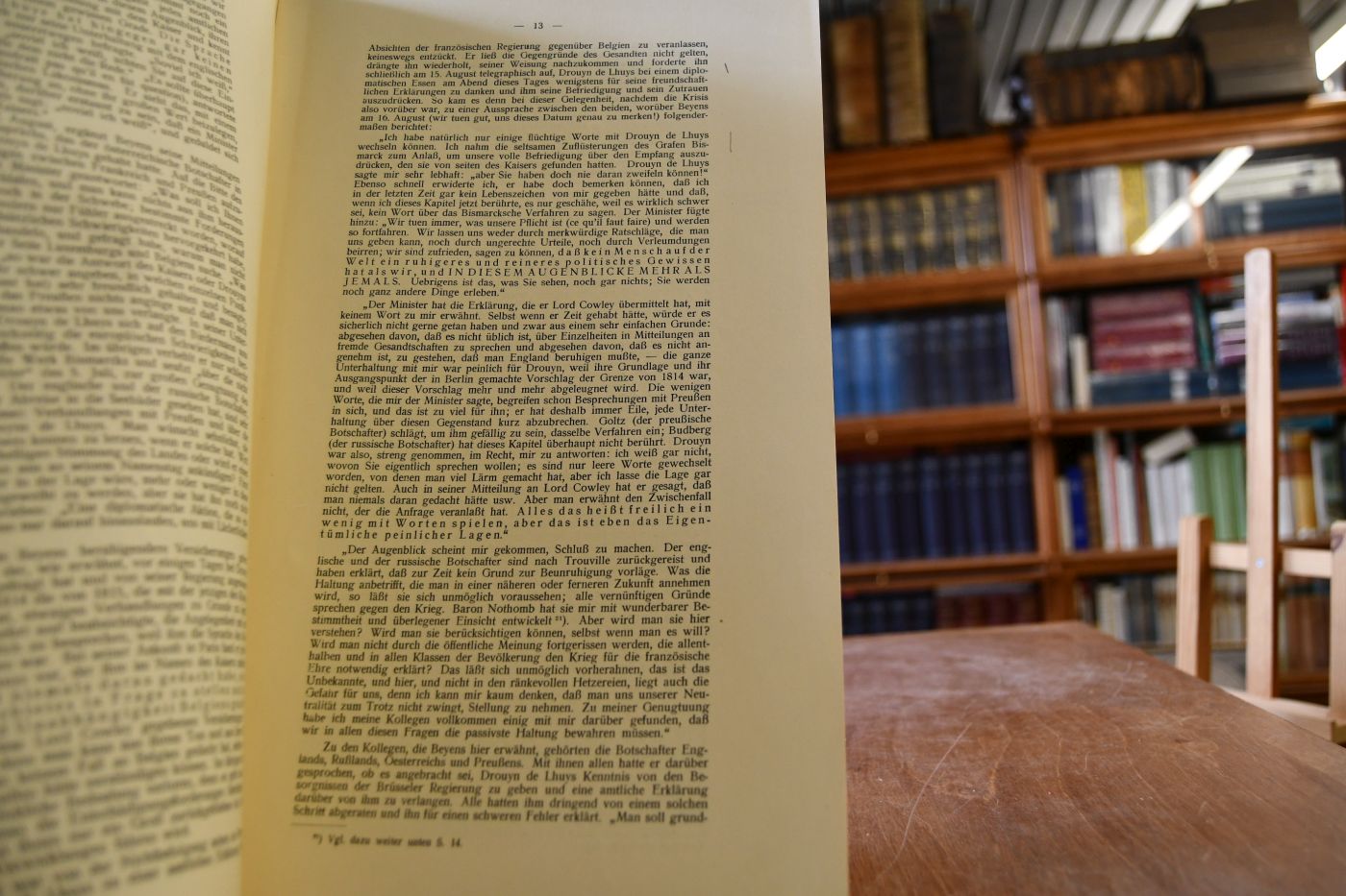 Beschreibung Einband berieben und bestoßen. Bibliotheksexemplar (Politische Abteilung b.d. Generalgouverneur in Belgien, Bundesarchiv) mit den üblichen Stempeln und Eintragungen. Handschriftlicher Besitzereintrag "Handexemplar Spannagel" (wohl der Historiker Karl Spannagel) auf dem Vorderdeckel. Durchgehend mit Bleistiftanstreichungen.