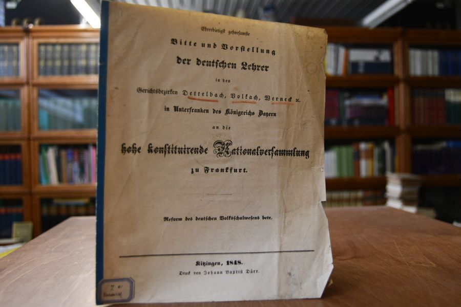 Ehrerbietigst gehorsamste Bitte und Vorstellung der deutschen Lehrer in den Gerichtsbezirken Dettelbach, Volkach, Werneck etc. in Unterfranken des Königreichs Bayern an die hohe konstituirende Nationalversammlung zu Frankfurt. Reform des deutschen Volkjsschulwesens betr.