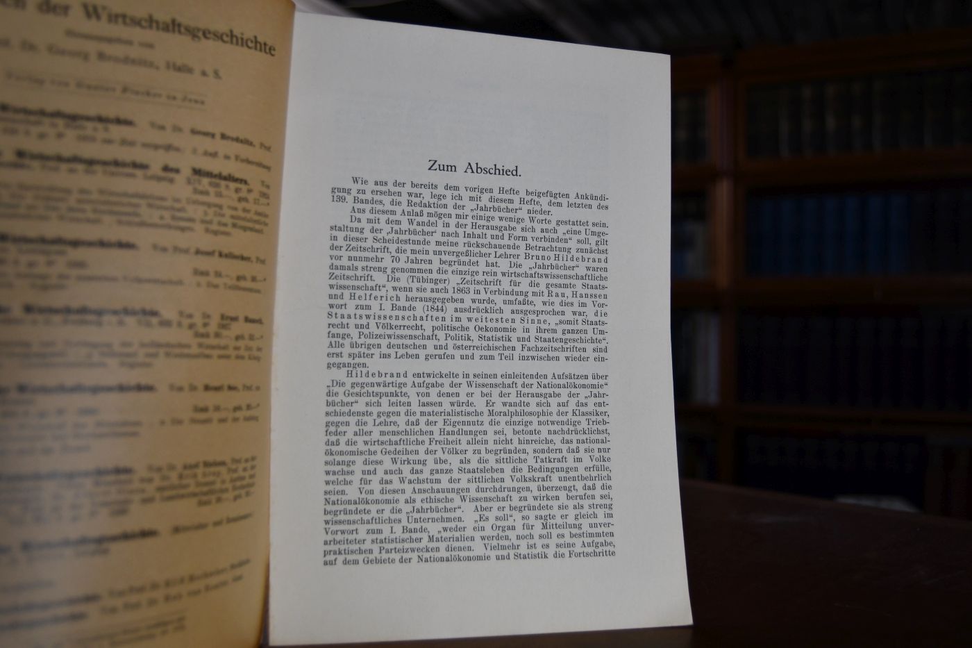 Beschreibung Einband berieben. Durchgehender Querfalz. Sonderdruck der Abschiedszeilen von Ludwig Elster, anläßlich der von den Nationalsozialisten erzwungenen Niederlegung der Schriftleitung der Jahrbücher für Nationalökonomie und Statistik.