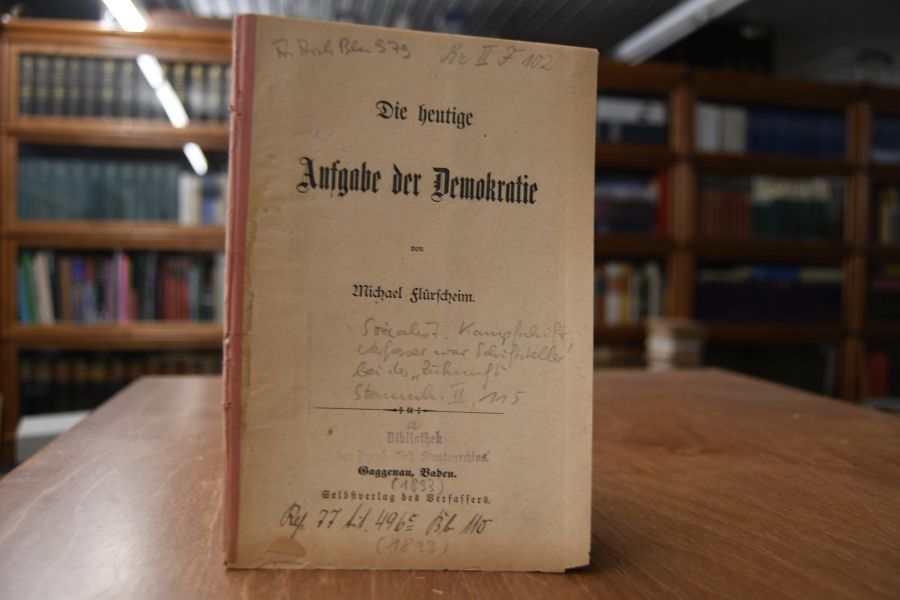 Beschreibung Broschur berieben, bestoßen, mit Einrissen und Verlust. Heftung gelockert. Papierbedingt gebräunt. Gutes Leseexemplar dieser sozialistischen Kampfschrift. Bibliotheksexemplar (Preuß. Geh. Staatsarchiv mit den üblichen Stempeln und Eintragungen. Michael Flürscheim * 1844 zu Frankfurt a.M. + 1912 zu Berlin, leitete die Eisenwerke in Gaggenau und wirkte seit 1888 ausschließlich auf dem Gebiete der Bodenreform. Seine Versuche, die Gründung einer Kolonie in Mexiko, der Gründung von Währungsbanken und einer Wohnungsreform mißlangen.