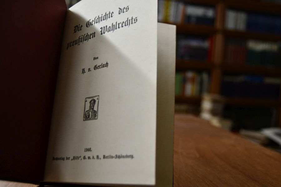 Einband berieben und bestoßen. Schnitt fleckig. Heftklammern korrodiert.