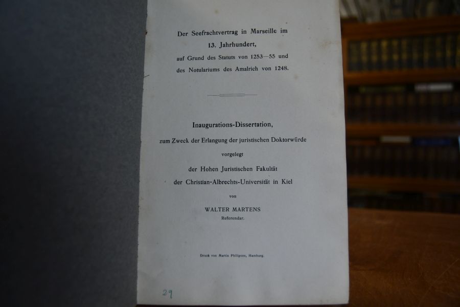Der Seevertrag in Marseille im 13. Jahrhundert, auf Grund des Statuts von 1253-55 und des Notulariums des Amalrich von 1248.