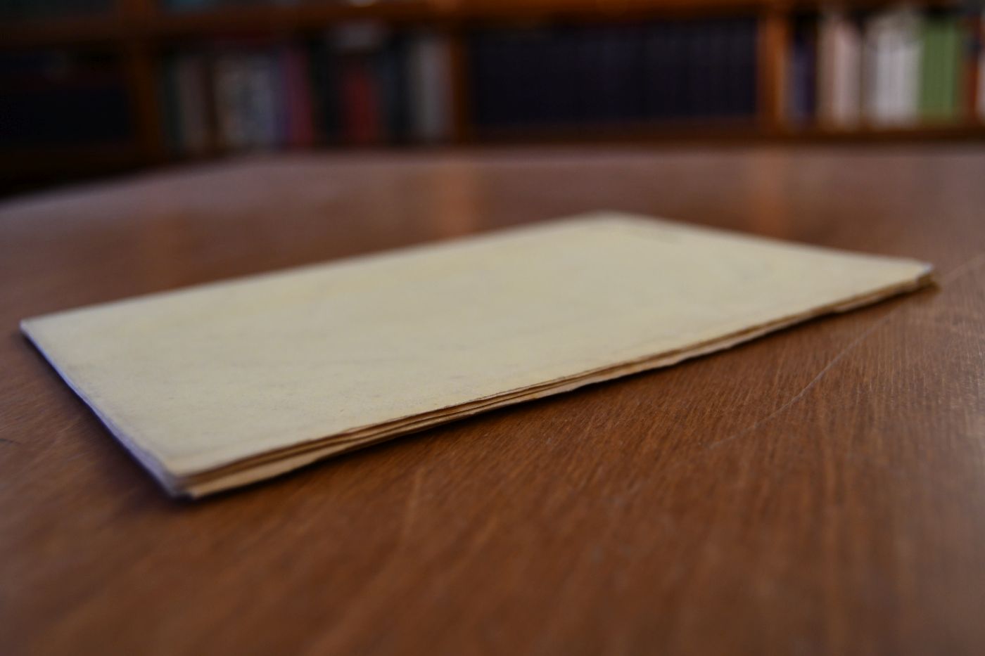 Beschreibung Späterer Broschurdeckel um den unaufgeschnittenen Bogen. Durchgehend fleckig.
