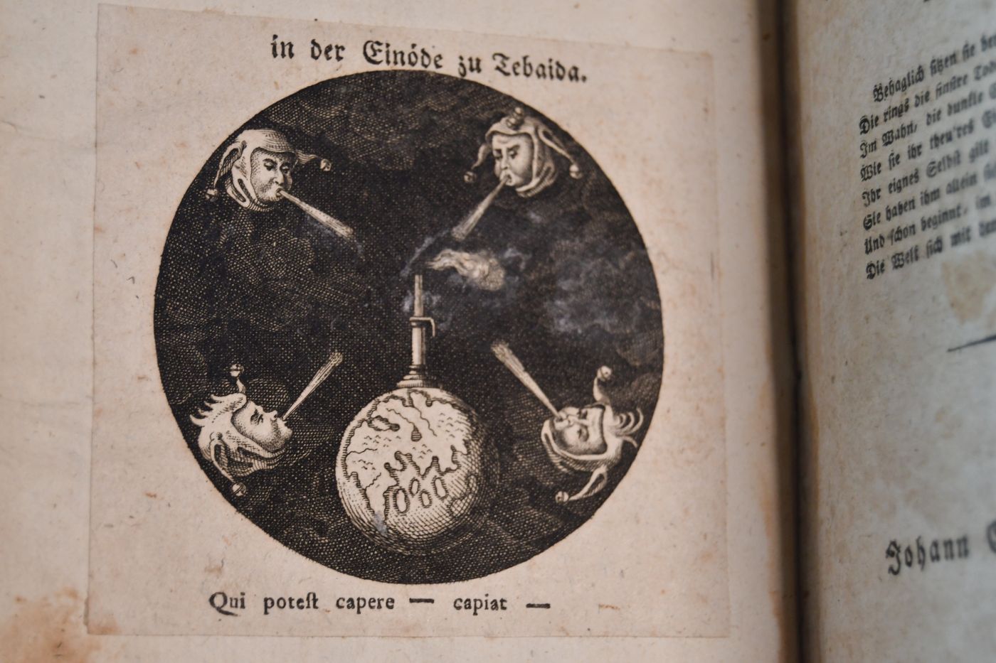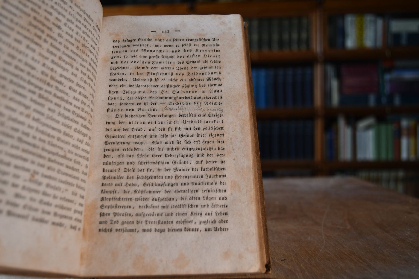 Beschreibung Einband berieben und bestoßen. Handschriftliches Gedicht (Die Maulwürfe) auf dem fliegenden Vorsatz. Besitzerstempel und durchgestrichener Besitzereintrag auf dem fliegenden Vorsatz ebenso wie ein eingeklebter Holzstich. Durchgehend stärker fleckig.