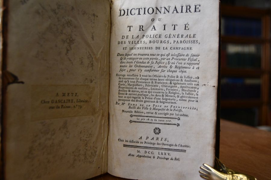 Dictionnaire ou Traité de la police générale des villes, bourgs, paroisses, et seigneuries de la campagne. Dans lequel on tourvera tout ce qui est nécessaire de savoir & de pratiquer en cette Partie, par un Procureur Fiscal, dans toute l`étendue de sa Justice, & où l`on a rapporté toutes les Ordonnances, Arrêts & Réglements à ce sujet, pour s`y conformer sur chaque objet.