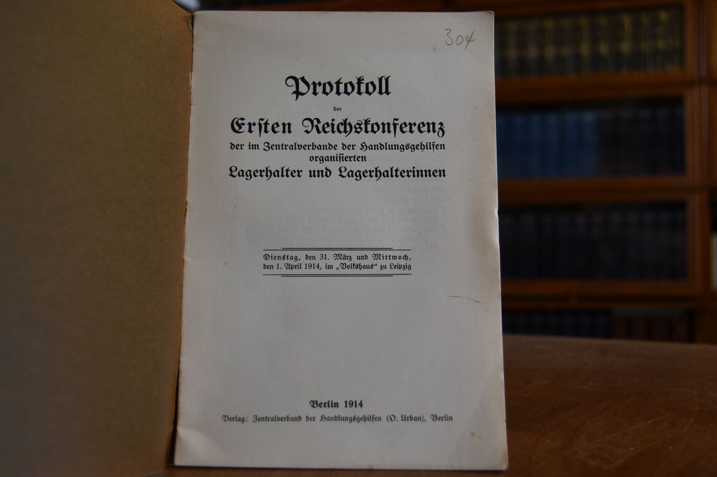 Protokoll der Ersten Reichskonferenz der im Zentralverbande der Handlungsgehilfen organisierten Lagerhalter und Lagerhalterinnen.
