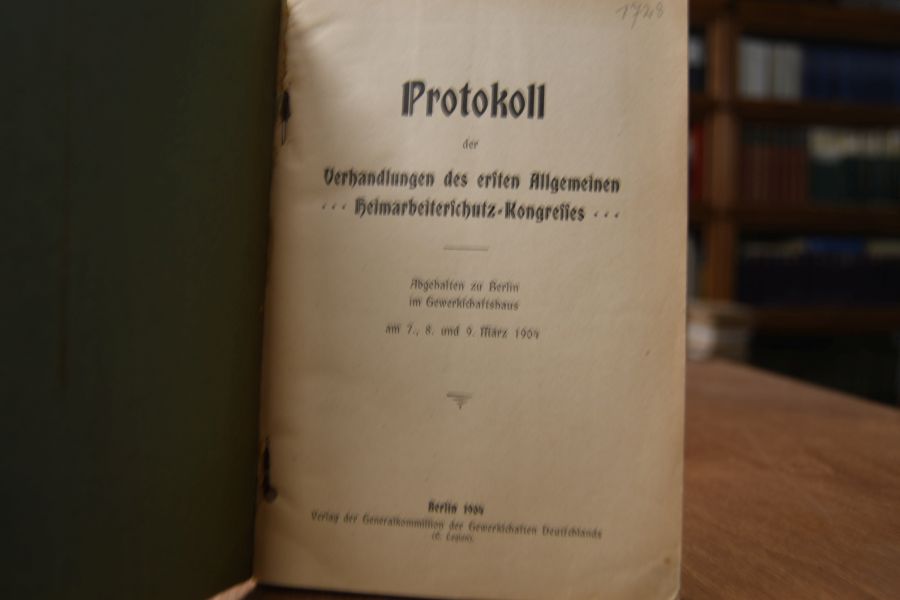 Protokoll der Verhandlungen des ersten Allgemeinen Heimarbeiterschutz-Kongresses.