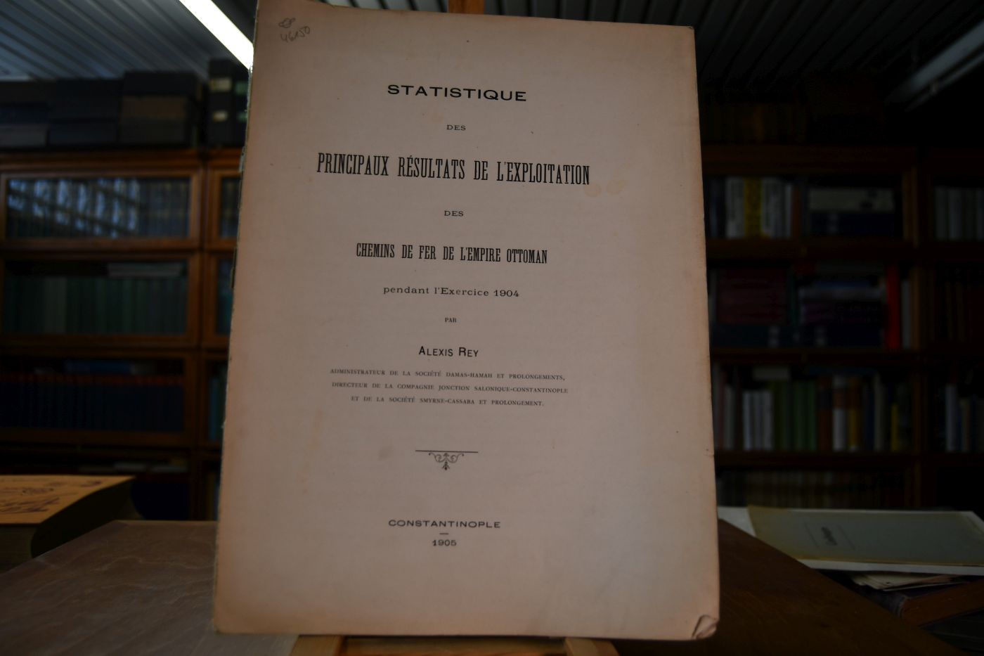 Statistique des Principaux Resultats de L`Exploration des Chemins de Fer de L`Empire Ottoman pendant l`Exercice 1904 par Alexis Rex Administrateur de la Societe Damas-Hamah et Prolongements, Directeur de la Compagnie Jonction Salonique-Constantinople et de la Societe Smyrne-Cassabe et Prolongement.
