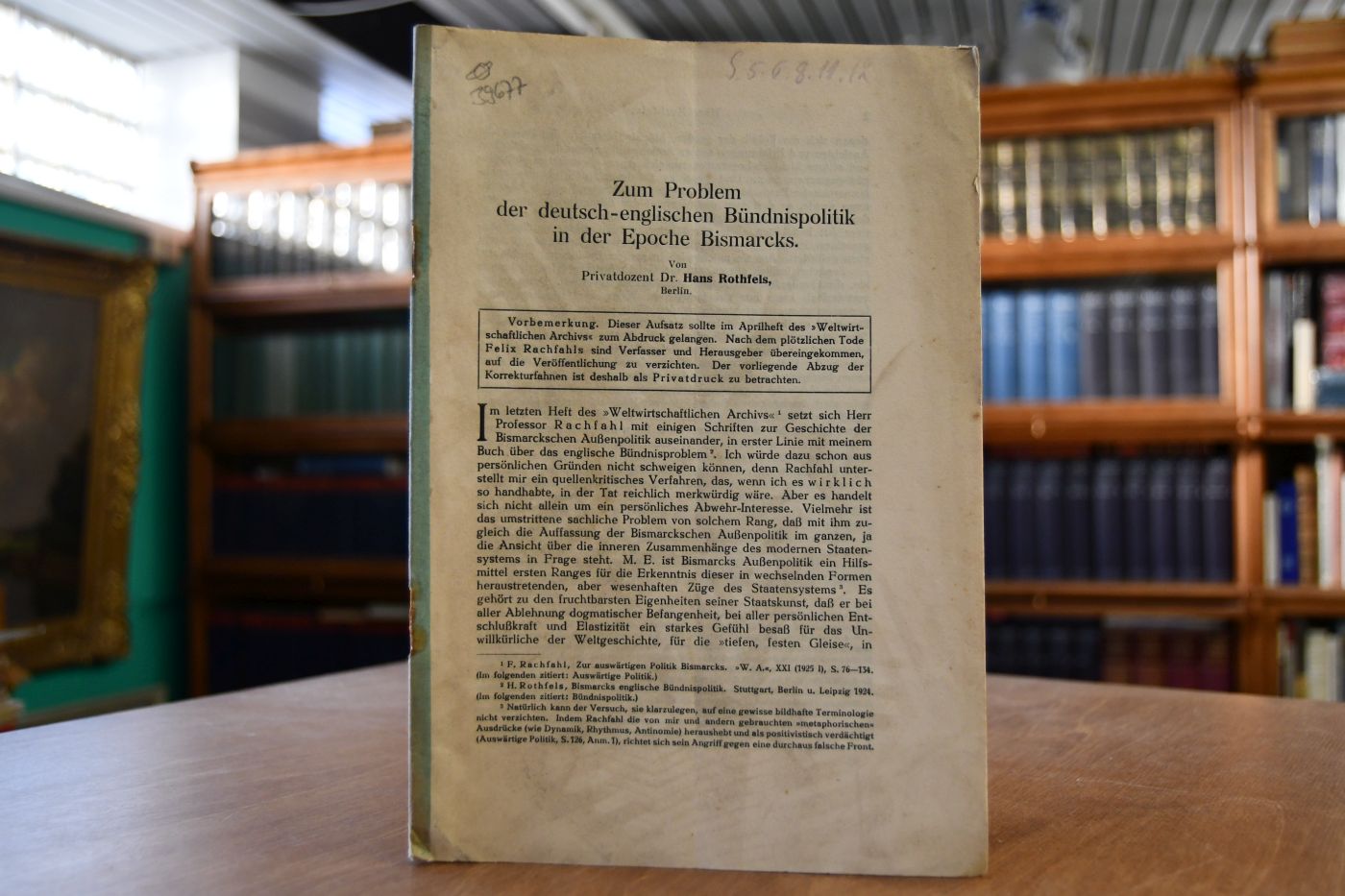 Beschreibung Erste und letzte Seite angeschmutzt und fleckig. Heftklammern korrodiert. Mit durchgehendem Längsfalz und Marginalien (wohl von Adalbert Wahl).