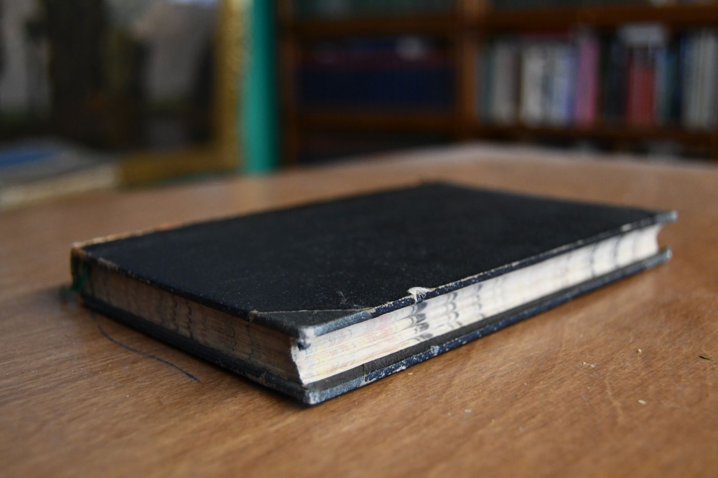 Format 19 x 13 cm, Halbleder mit umlaufenden marmorierten Schnitt