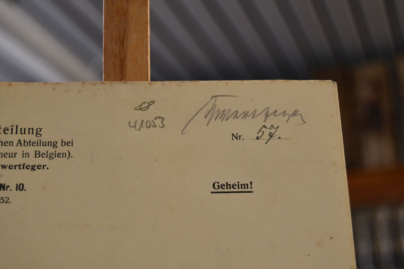 Archivabteilung (Sektion 6) der Politischen Abteilung bei dem General-Gouverneur in Belgien. Leiter: Oberst Schwertfeger. Denkschrift Nr. 10. Tgb.-Nr. 652.