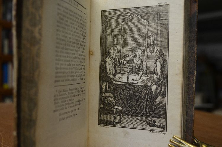 Seiten XXIV, 222 S. mit gestochenem Frontinspiz, mit gest. Titel-, Kopf- u. Schlußvign., 13 Kupfertaf. v. Le Mire, Tardieu u. a. nach Eisen.