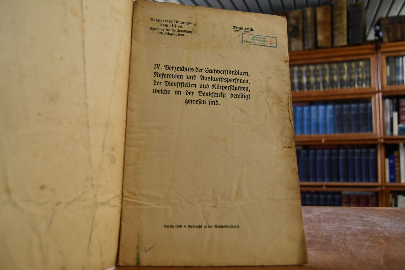 Reichsentschädigungskommission. Abteilung für die Ermittlung von Kriegsschäden. Frankreich.