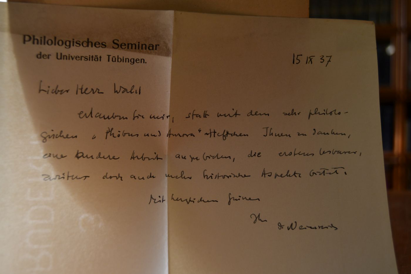 Beschreibung Einband berieben, bestoßen und angeschmutzt. Beiliegend ein handschriftlicher Überreichungsbrief an Adalbert Wahl vom 15.9.1937.