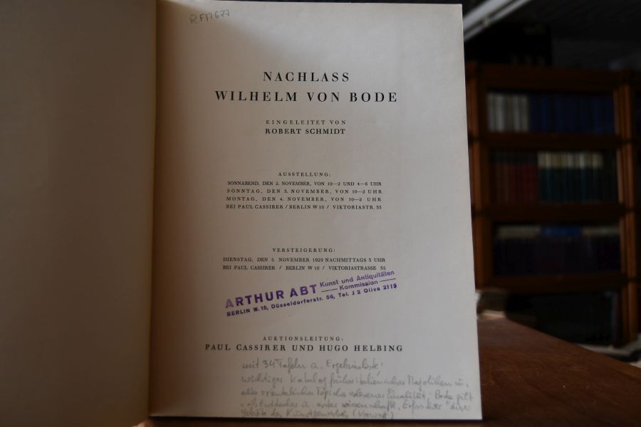 Nachlass Wilhelm von Bode. Versteigerungskatalog Paul Cassirer Berlin.