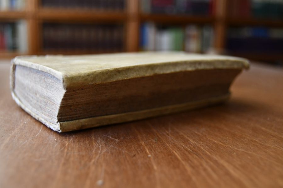 Format 16 x 11 cm, Schweinsleder mit handschriftlicher Rückenbeschriftung.