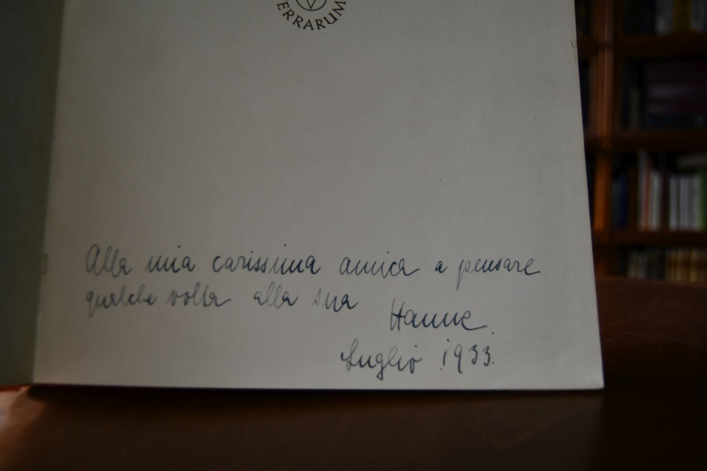 Beschreibung Einband berieben und angeschmutzt. Längsschnitt mit Tintenfleck. Handschriftliche WIdmung auf Reihentitel. AUf WIdmungsblatt gelöstes Photo mit Lösespuren. Foto mit handschriftlicher Widmung (Angelo Brovedan) liegt bei. Innen sauber.