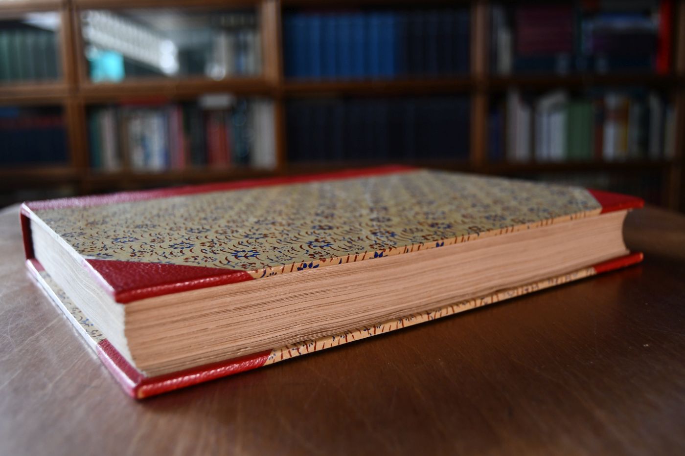 Format 28 x 22 cm, Halbleder auf 5 Bünden mit Kopfgoldschnitt