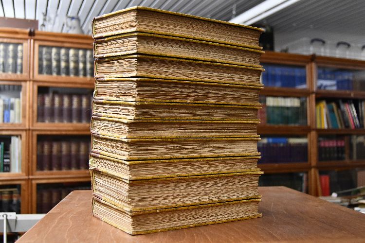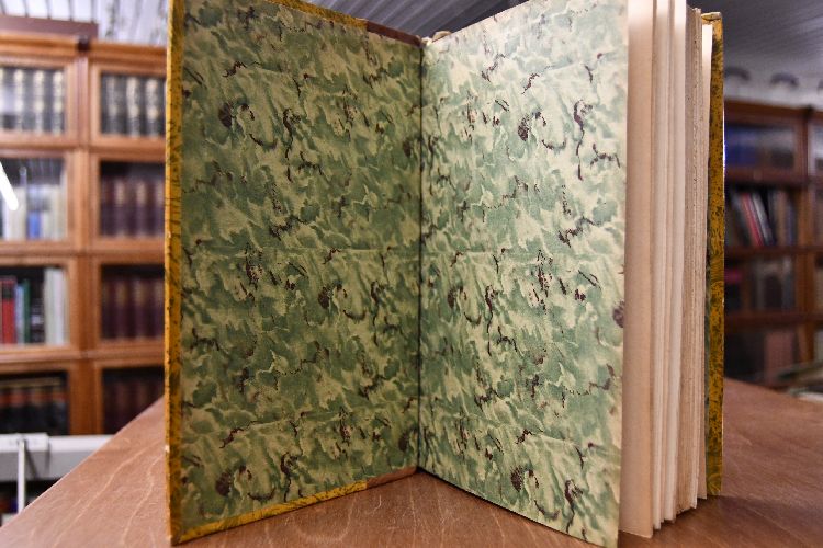 Format 26 x 18 cm, Halbleder mit 4 Bünden und 2 Rückenschildern sowie stumpfem Kopfgoldschnitt
