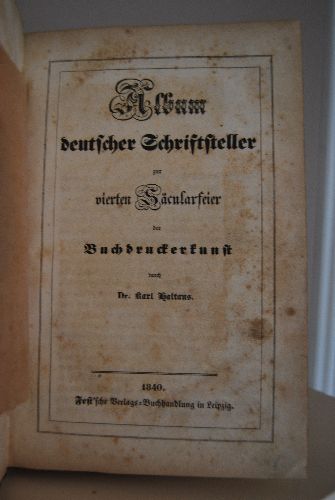 Album deutscher Schriftsteller zur vierten Säcularfeier der Buchdruckerkunst.