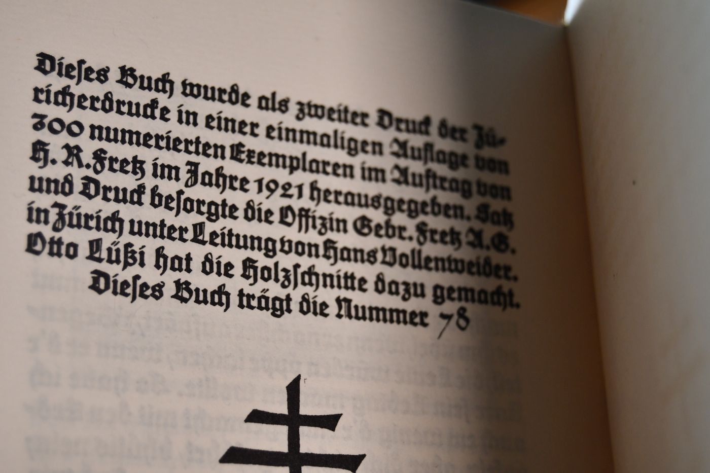 Zweiter Druck der Züricherdrucke im Auftrag von H.R. Fretz unter Leitung von Hans Vollenweider. Otto Lüßi hat die Holzschnitte dazu gemacht