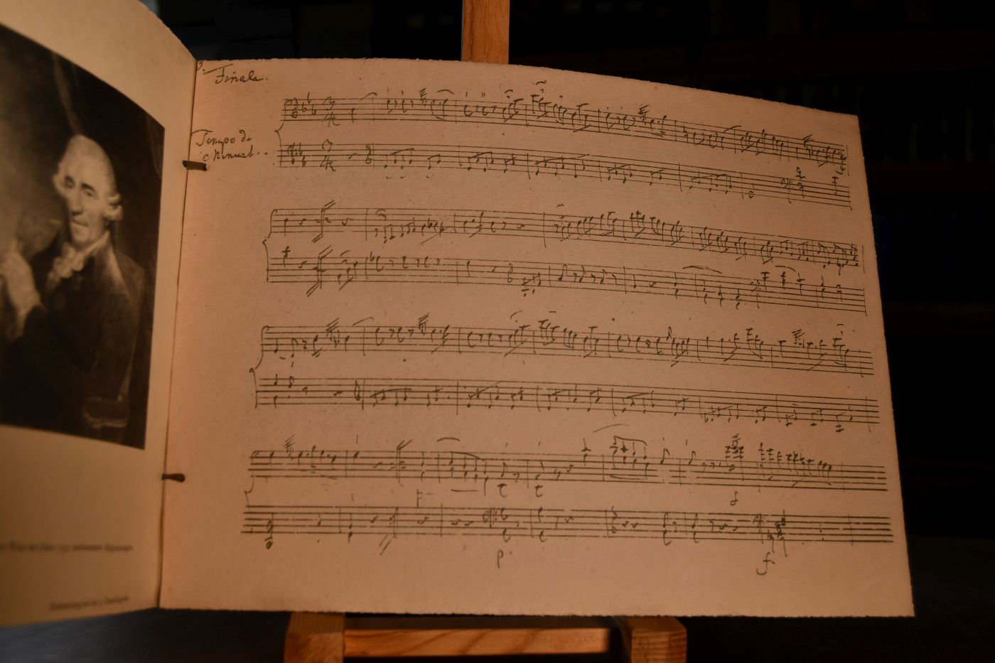 Auflage Faksimiledruck des letzten Satzesder Klaviersonate in Es. $ Seiten Noten und 2 Seiten Text von Alfred Orel. Mit einem Portrait des Komponisten.