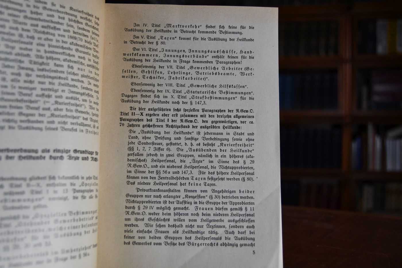 Mit einem Anhang: "Heilkunde und Reichsgewerbeordnung", von Staatsminister Prof. Dr. Drews, Präsident des preußischen Oberverwaltungsgerichts,). Als Manuskript gedruckt.