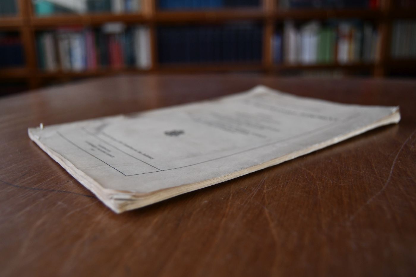 Beschreibung Einband berieben, bestoßen, angeschmutzt, fleckig und mit Feuchtigkeitsspuren.Heftklammern korrodiert. Eselsohrig. Papier durch Feuchtigkeitseinwirkung durchgehend wellig. Mit Prägestempel von James Goldschmidt auf dem Vorderdeckel.