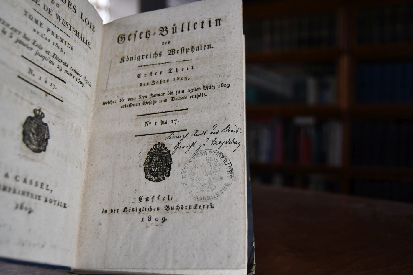 Gesetz-Bülletin des Königreichs Westphalen. Erster Theil des Jahrs 1809, welcher die vom 5ten Januar bis zum 29sten März 1809 erlassenen Gesetze und Decrete enthält (Nr. 1 bis 17).