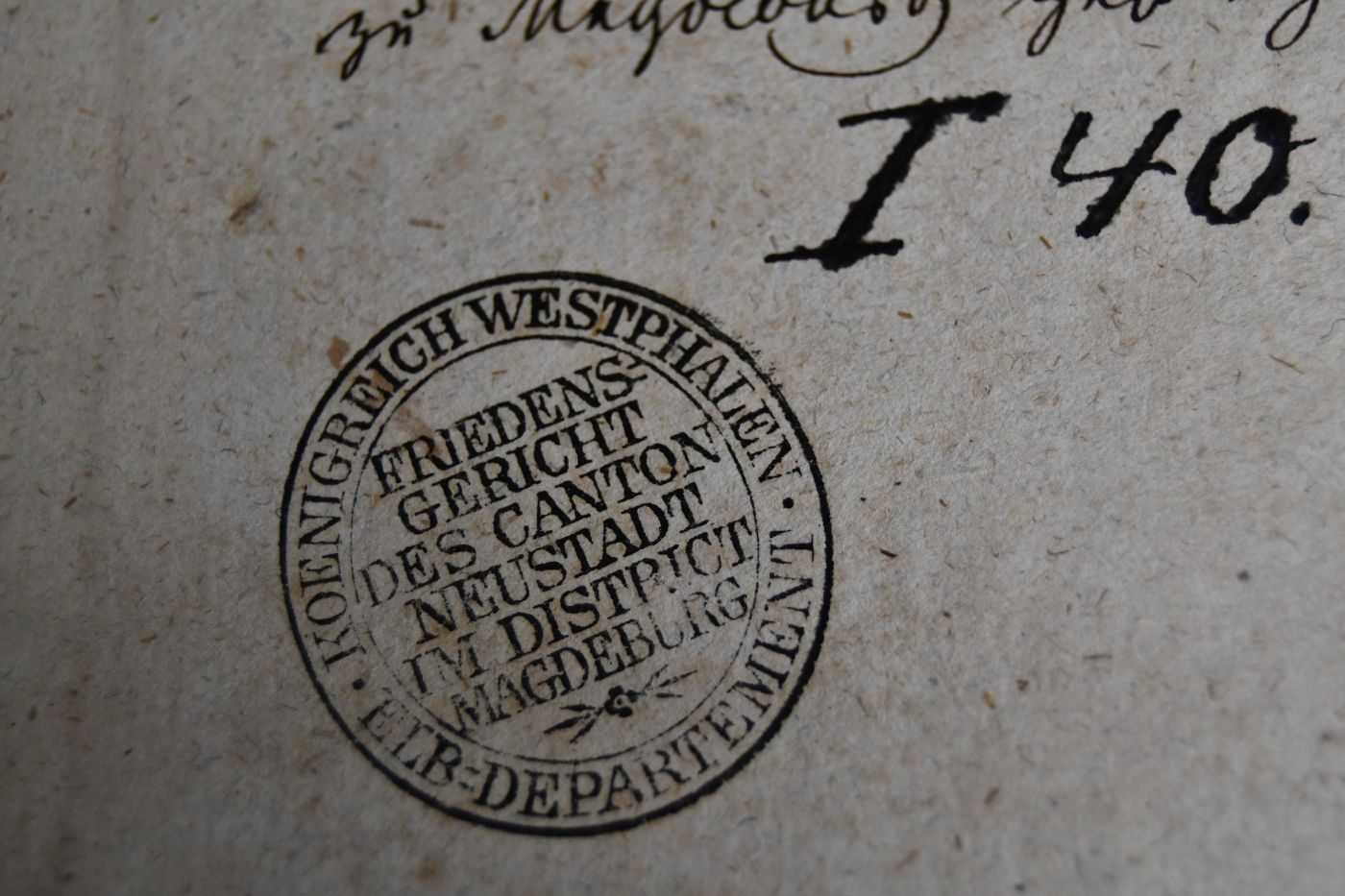 Beschreibung Einband berieben und bestoßen. Bibliotheksexemplar (Friedensgericht des Canton Neustadt im District Magdeburg, Königreich Westphalen, Elb-Departement) mit den üblichen Stempeln und Eintragungen.
