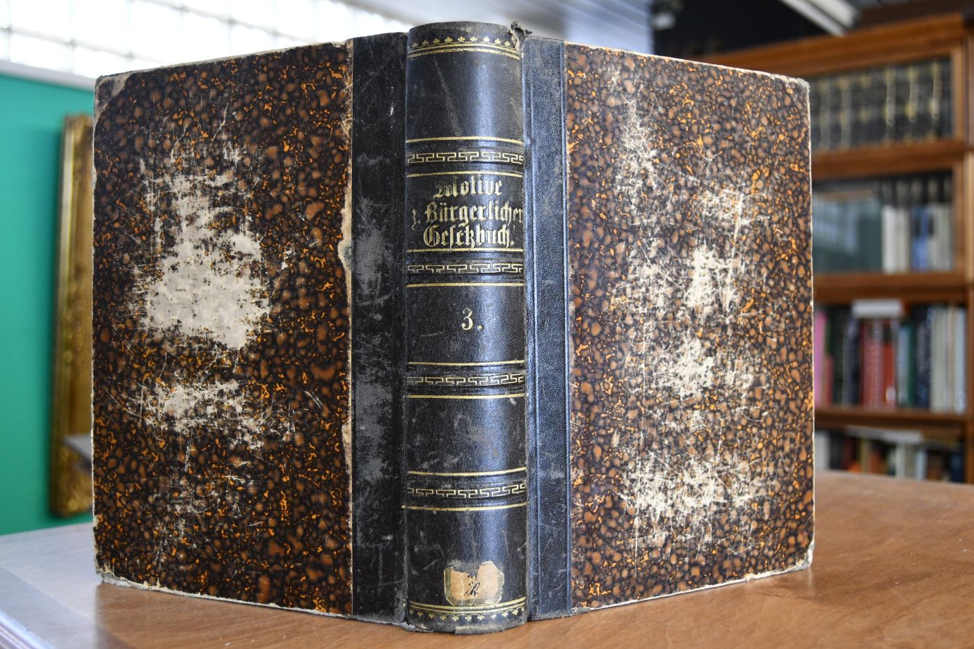 Beschreibung Einband berieben, bestoßen und mit Einrissen am Rücken. Schnitt etwas fleckig und angeschmutzt. Bibliotheksband (Koen. Preuss. Amtsgericht Haigerloch) mit den üblichen Stempeln und Eintragungen. Etwas eselsohrig.