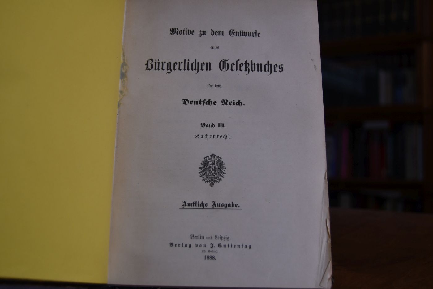 Motive zu dem Entwurfe eines Bürgerlichen Gesetzbuches für das Deutsche Reich. Band III Sachenrecht (apart).