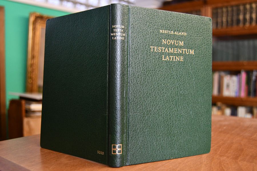 Novum testamentum Latine. Novam vulgatam Bibliorum sacrorum ed. secuti apparatibus titulisque additis ediderunt Kurt Aland et Barbara Aland una cum Inst. Studiorum Textus Novi Testamenti Monasteriensi (Westphalia).