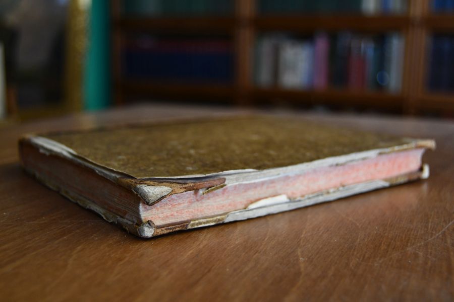 Format 20 x 17 cm, Halbleder der Zeit mit Rückenschild und umlaufenden Sprengschnitt