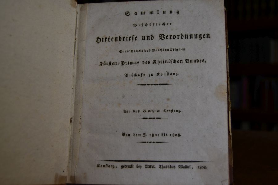 Sammlung Bischöflicher Hirtenbriefe und Verordnungen S[ei]ner Hoheit des Durchlauchtigsten Fürsten-Primas des Rheinischen Bundes, Bischofs zu Konstanz. Für das Bisthum Konstanz. Von dem J. 1801 bis 1808.