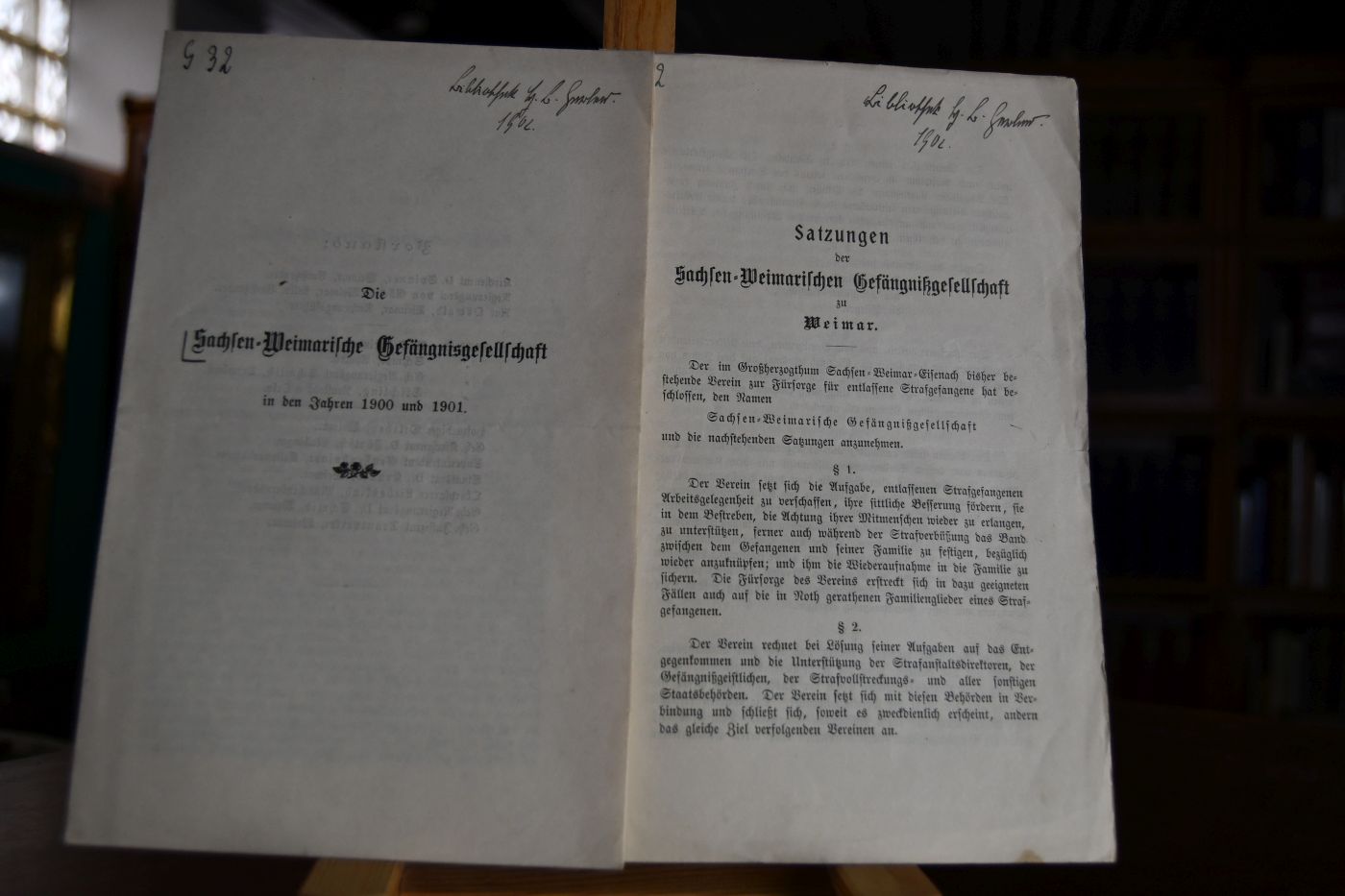 Satzungen der Sachsen-Weimarischen Gefängnißgesellschaft zu Weimar vom 7. Juli 1900 und Die Sachsen-Weimarische Gefängnisgesellschaft in den Jahren 1900 und 1901.