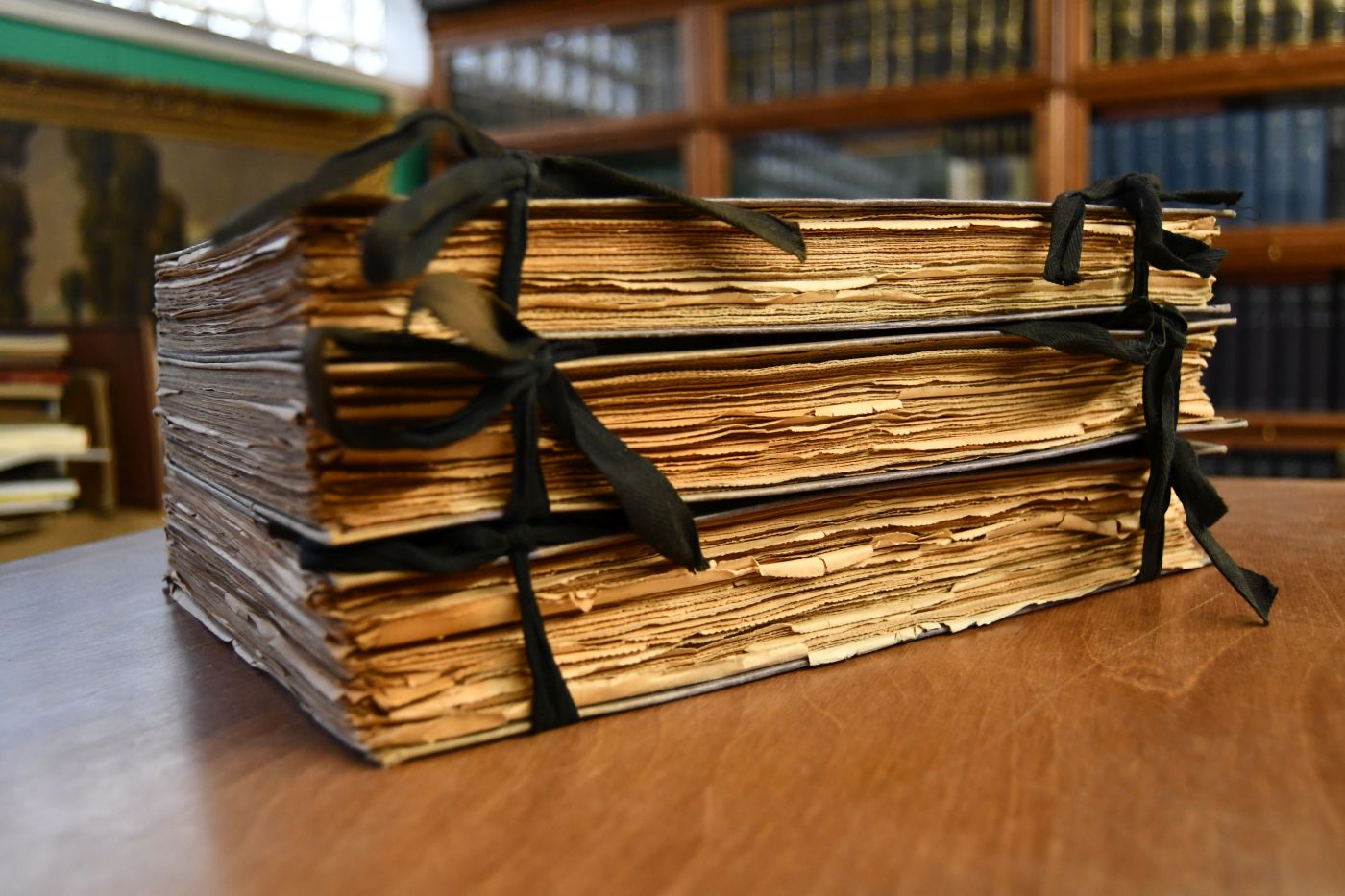 Format 31 x 22 cm, unaufgeschnittene Bögen und Einzelblätter in Sammelmappen