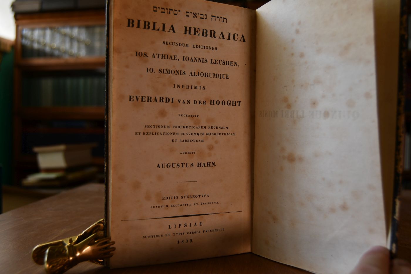 Biblia Hebraica, secundum editiones, Ios. Athiae, Ioannis Leusden, Io. Simonis Aliorumque, inprimis Everardi van der Hooght, recensuit sectionum propheticarum recensum et explicationem clavemque marorethicam et rabbinicam addidit Augustus Hahn. Quinque Libri Mosis.