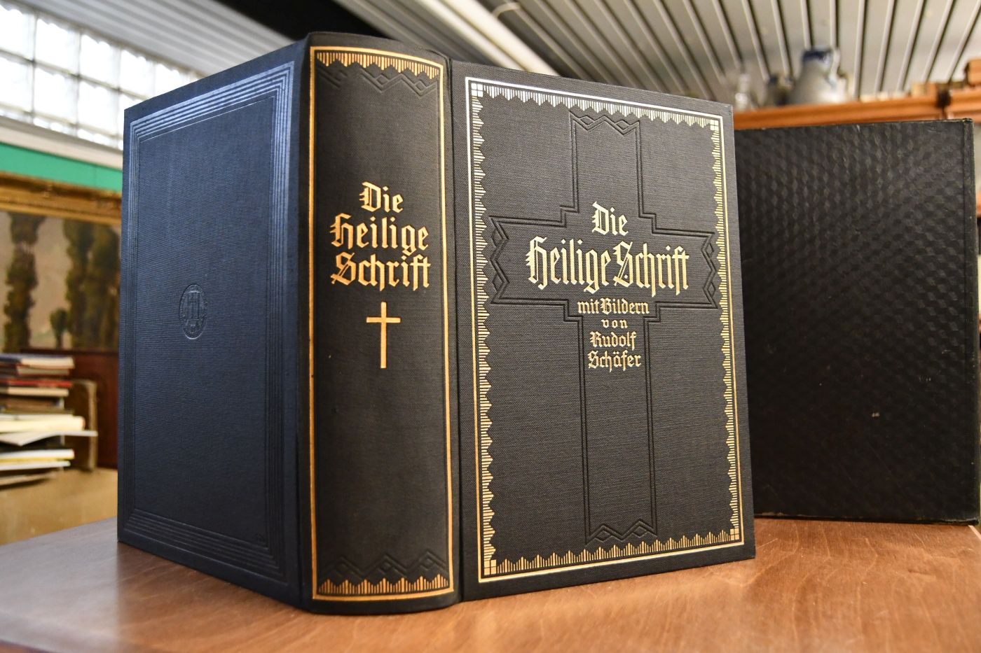 Beschreibung Einband etwas berieben. Schutzumschlag in 2 Teile getrennt und mit Einrissen und Fehlstellen. Die Bibelillustrationen des Malers und Graphikers Rudolf Schäfer (1871 Altona - 1961 Rotenburg-Wümme), gehören zu den bedeutendsten des 20. Jahrhunderts. Die Familienchronik (am Ende) ist unbenutzt.
